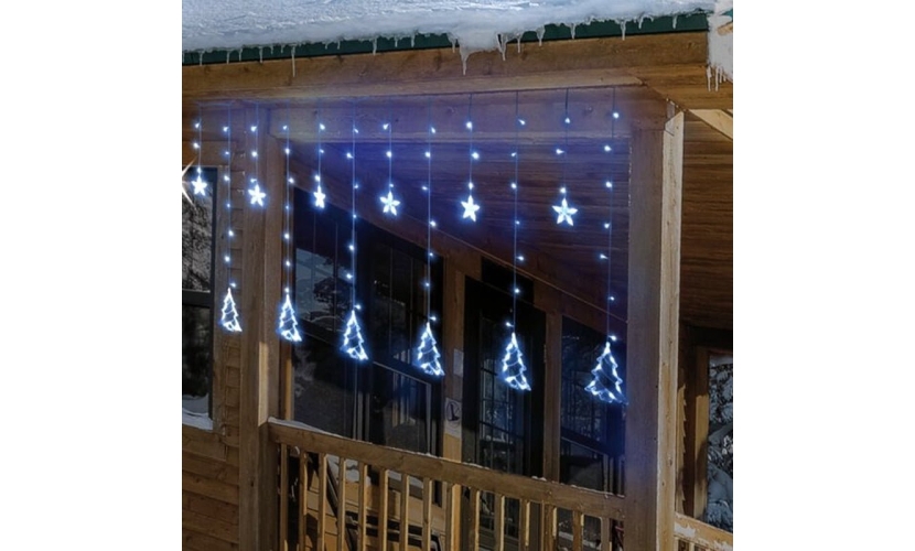 Χριστουγεννιάτικα Φωτάκια Κουρτίνα Δεντράκια & Αστεράκια Ψυχρό Χρώμα 3M - Christmas curtain light white light