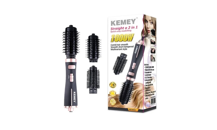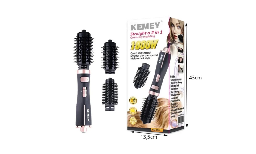Ανανεώστε το styling των μαλλιών σας εύκολα και γρήγορα με την KEMEY Hot Air Brush 2 σε 1! Συνδυάζει πιστολάκι και βούρτσα σε μία συσκευή και προσφέρει επαγγελματικό αποτέλεσμα στο σπίτι. Ιδανική για ίσιωμα, όγκο και κυματισμό – χωρίς κόπο και με λιγότερη φθορά.