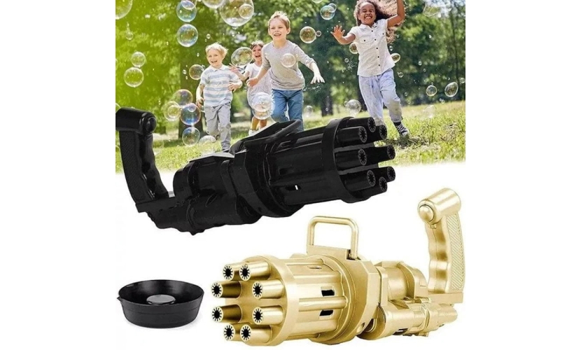 Μηχανή για σαπουνόφουσκες Bubble Gun Machine Οχταπλό Όπλο Για Άπειρες Σαπουνόφουσκες Πολύχρωμες – Bubble Machine Gun – Συσκευή Για Φυσαλίδες Το μικρό του βάρος και η μεγάλή του διάμετρος επιτρέπουν σε οποιονδήποτε, να κάνει ένα τρελό παιχνιδο-πόλεμο!!! Σούπερ, πρωτοποριακό όπλο – παιχνίδι που εκτοξεύει ασταμάτητα εκατοντάδες πολύχρωμες σαπουνόφουσκες! Με κάθε πάτημα του κουμπιού ψεκάζει από 8 ξεχωριστές τρύπες, αλυσίδες με άπειρες σαπουνόφουσκες.