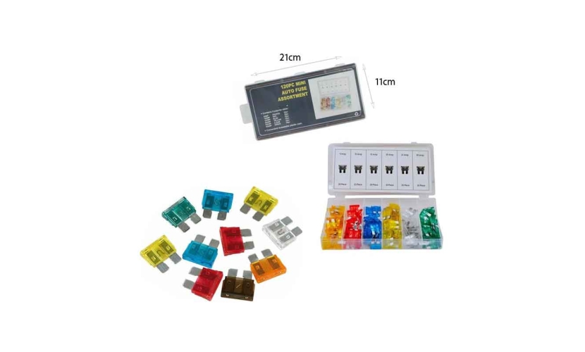 Πλήρες σετ με 120 ασφάλειες αυτοκινήτου διαφόρων εντάσεων (από 5A έως 30A), κατάλληλο για αυτοκίνητα, φορτηγά, μοτοσυκλέτες και άλλες εφαρμογές DC. Οι ασφάλειες διακρίνονται εύκολα χάρη στα διαφορετικά τους χρώματα και είναι οργανωμένες σε πρακτική πλαστική θήκη με διαστάσεις 21 x 11 cm για εύκολη αποθήκευση και μεταφορά. Ιδανικό για επαγγελματίες και ερασιτέχνες μηχανικούς.