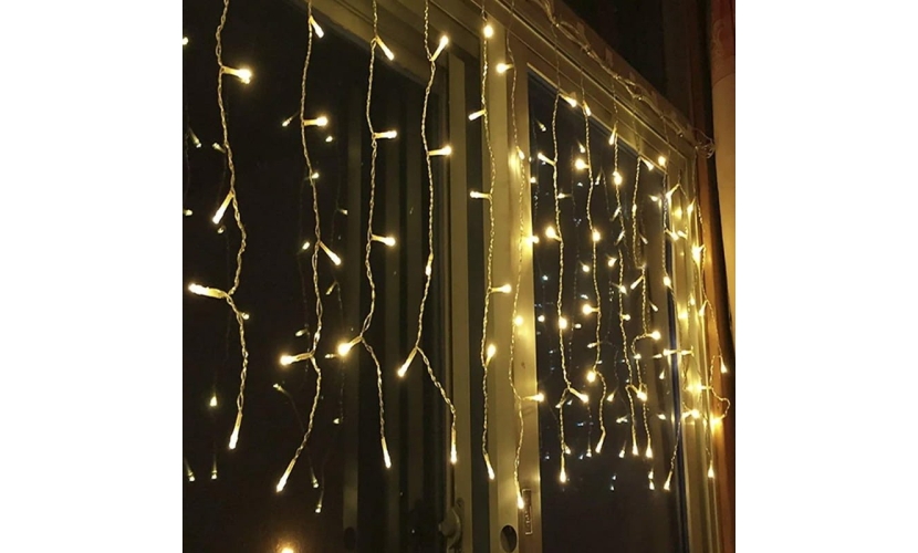 Χριστουγεννιάτικα Λαμπάκια Κουρτίνα LED Θερμό Χρώμα με Διαφανές Καλώδιο 5mx60cm - Christmas lights curtain warm light