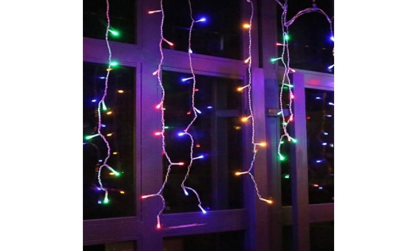 Χριστουγεννιάτικα Λαμπάκια Κουρτίνα LED 100L Πολύχρωμο Χρώμα RGB με Διαφανές Καλώδιο 3m 40x50x60cm - Christmas lights LED RGB