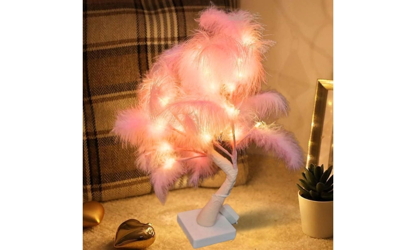 Αυτόφωτο επιτραπέζιο διακοσμητικό δεντράκι με πούπουλα και Led θερμό φωτισμό. Δημιουργήστε μοναδική ατμόσφαιρα και φτάξτε ένα ξεχωριστό χριστουγεννιάτικο δέντρο με έναν μοναδικό στολισμό φέτος τα χριστούγεννα. Τα λυγισμένα κλαδιά μπορούν να προσαρμοστούν σε οποιοδήποτε σχήμα. Τα φώτα Led καλύπτουν την ανάγκη φωτεινότητας, εξοικονόμησης ενέργειας και μεγάλης διάρκειας ζωής.