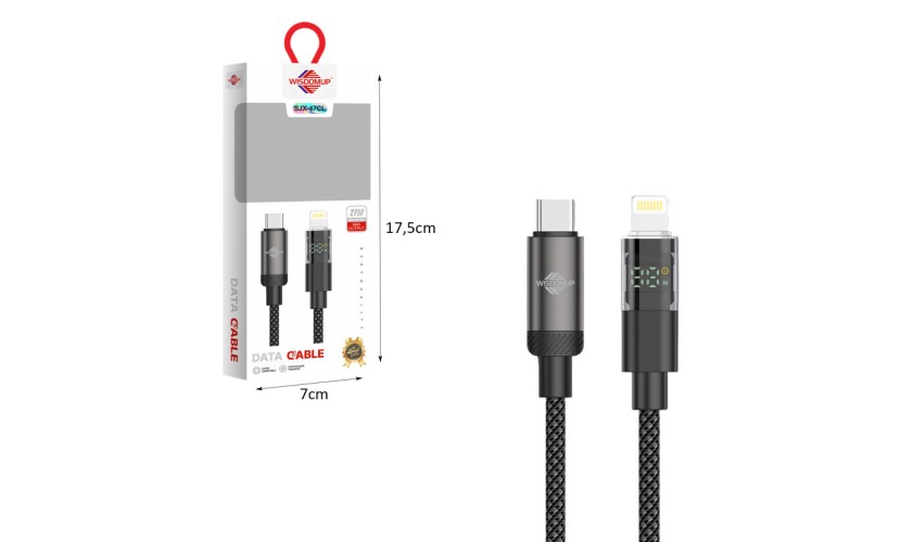 Καλώδιο φόρτισης Type-C σε Lightning με ενσωματωμένη ψηφιακή ένδειξη LED, που προσφέρει άμεση πληροφόρηση για την ισχύ φόρτισης σε πραγματικό χρόνο. Ιδανικό για συσκευές Apple, συνδυάζει ταχύτητα, ασφάλεια και σύγχρονο σχεδιασμό.