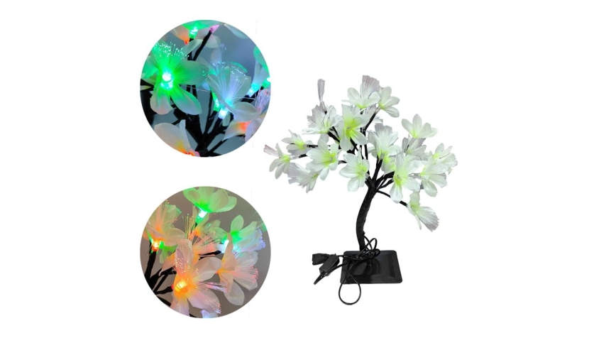 Χριστουγεννιάτικο διακοσμητικό φωτιζόμενο δεντράκι με λουλούδια RGB - Christmas copper wire small tree lamp RGB