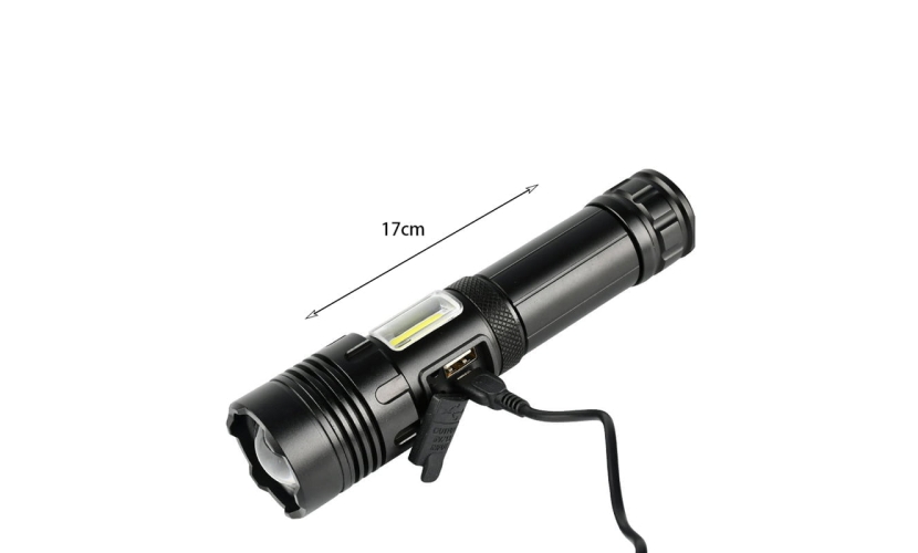 Φακός χειρός κατάλληλος για χρήση σε δραστηριότητες όπως κατασκήνωση, πεζοπορία, ποδηλασία, κυνήγι, ψάρεμα ή κατά διάρκεια των εργασιών όπως επισκευή στο σπίτι. Είναι επαναφορτιζόμενος και τροφοδοτείται μέσω της θύρας USB. Επίσης, έχει ενσωματωμένο δεύτερο πλευρικό φως. Έχει μήκος 17cm. 500 lumen 1-500m USB TYPC-C Red warning Τηλεσκοπικό ζουμ