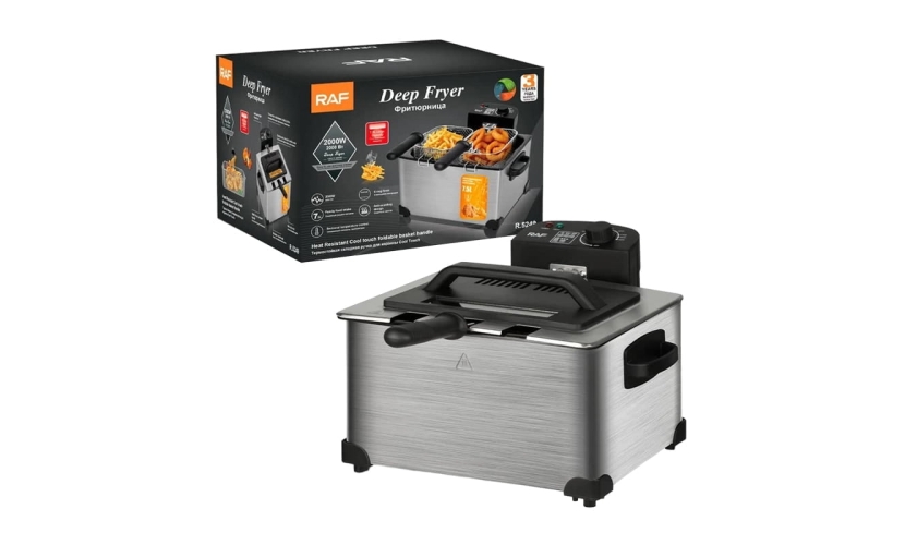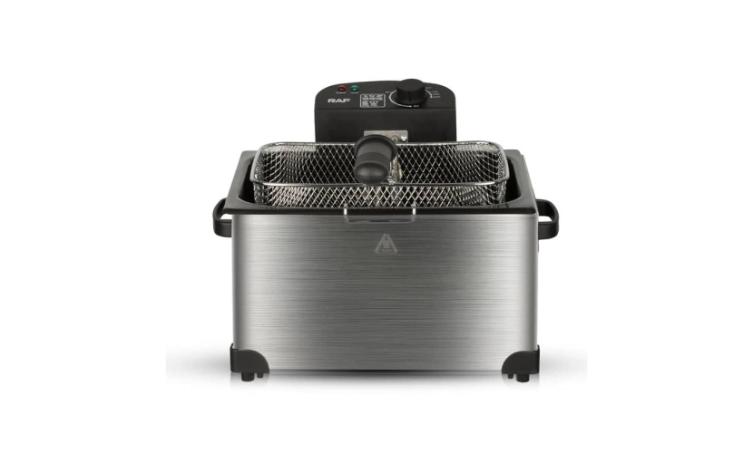 Η φριτέζα της Raf με ισχύ 2000W, είναι μια κλασική φριτέζα με χωρητικότητα λαδιού 5 λίτρα. Διαθέτει αποσπώμενο κάδο για να καθαρίζεται ευκολότερα και ρυθμιζόμενο θερμοστάτη για να μπορείτε να μαγειρέψετε φαγητά που απαιτούν διαφορετικές θερμοκρασίες ψησίματος.