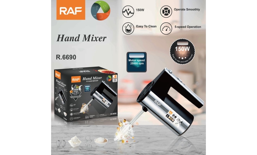 Παρουσιάζουμε το μίξερ χειρός RAF και το χτυπητήρι αυγών R.6690, μια βασική κουζίνα σχεδιασμένη για απρόσκοπτη ανάμειξη. Με έναν ισχυρό κινητήρα 100W που λειτουργεί στα 220V και 50Hz, αυτός ο ευέλικτος αναδευτήρας χειρός εξασφαλίζει σταθερή απόδοση. Η ταχύτητα του κινητήρα 25000 rpm και η λειτουργία 5 ταχυτήτων παρέχουν ακριβή έλεγχο για διάφορες συνταγές. Εξοπλισμένο με δύο τύπους κεφαλών ανάδευσης – χτυπητήρι και γάντζους ζύμης – αυτό το μίξερ είναι το ιδανικό μέρος για μια σειρά από γαστρονομικές εργασίες. Το βολικό κουμπί εξαγωγής απλοποιεί τις αλλαγές προσάρτησης, ενώ το επιχρωμιωμένο φινίρισμα προσθέτει ανθεκτικότητα και στυλ. Λειτουργήστε ομαλά στις προσπάθειές σας στο ψήσιμο με αυτό το φιλικό προς το χρήστη μίξερ που δεν είναι μόνο εύκολο στη χρήση αλλά και εύκολο στο καθάρισμα. Αναβαθμίστε την εμπειρία της κουζίνας σας με το Μίξερ χειρός RAF και τον Αυγοδάρτη R.6690 – ο τέλειος συνδυασμός ισχύος και άνεσης. Ισχύς: 100W, 220V, 50Hz Ταχύτητα κινητήρα: 25000 rpm Λειτουργία 5 ταχυτήτων 2 είδη κεφαλών ανάδευσης: χτυπητήρι & γάντζοι ζύμης Κουμπί εξαγωγής Επιχρωμιωμένο Λειτουργήστε ομαλά Εύκολο στη χρήση και στον καθαρισμό