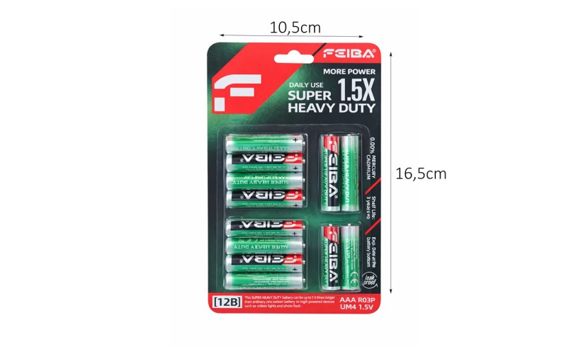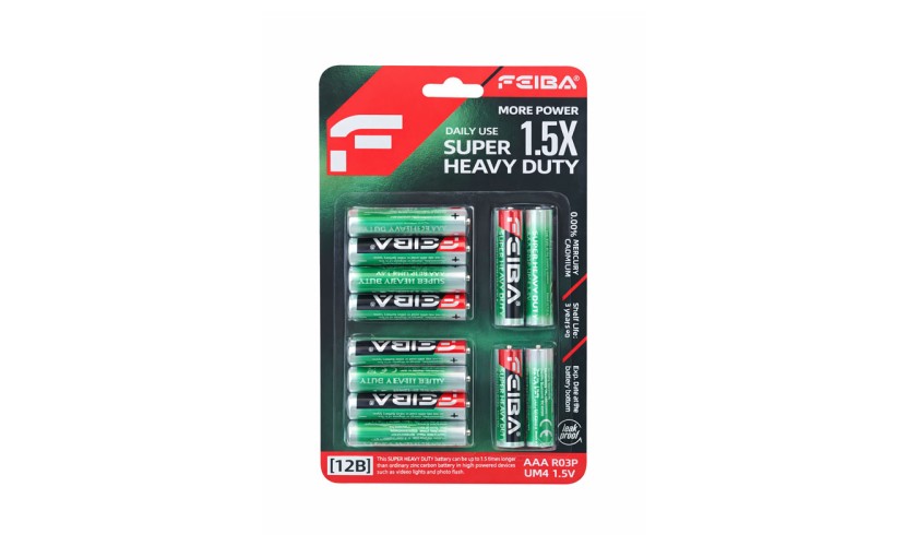 Μπαταρίες τύπου ΑΑΑ Super Heavy Duty, σχεδιασμένες για αξιόπιστη απόδοση σε καθημερινή χρήση. Παρέχουν σταθερή παροχή ενέργειας και αυξημένη διάρκεια ζωής σε σύγκριση με τις απλές μπαταρίες άνθρακα, καλύπτοντας τις ανάγκες οικιακών και επαγγελματικών συσκευών.