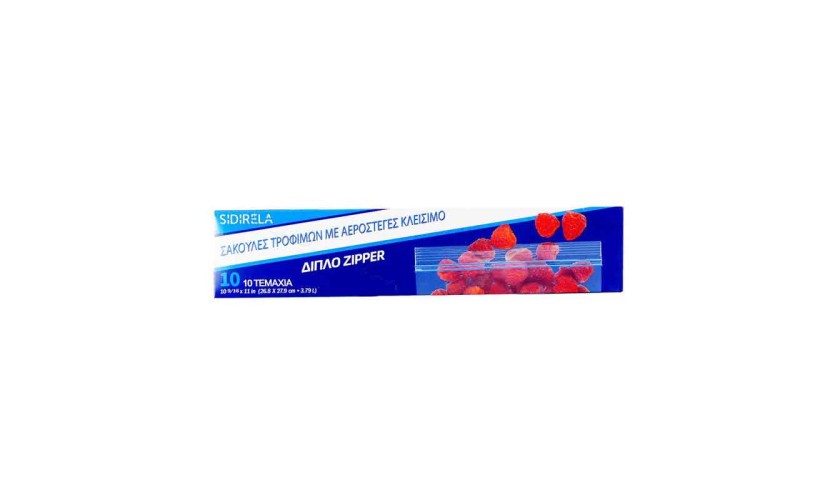 Sidirela Σακούλες τροφίμων με αεροστεγές κλείσιμο 26.8×27.9cm 3.79L 10τμχ E-3359 – Double zipper food storage bag 10pcs Η συσκευασία περιλαμβάνει 10 σακούλες. Οδηγίες Προφύλαξης: Κρατήστε μακριά από τα παιδιά. Κίνδυνος ασφυξίας.