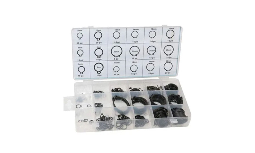 Ασφάλειες SNAP RING σετ 300 τεμαχίων. Διαστάσεις: 3 mm – 20 τεμάχια 4 mm – 10 τεμάχια 5 mm – 15 τεμάχια 6 mm – 25 τεμάχια 8 mm – 15 τεμάχια 9 mm – 20 τεμάχια 11 mm – 15 τεμάχια 12 mm – 15 τεμάχια 13 mm – 25 τεμάχια 14 mm – 15 τεμάχια 15 mm – 20 τεμάχια 19 mm – 25 τεμάχια 20 mm – 15 τεμάχια 22 mm – 20 τεμάχια 25 mm – 15 τεμάχια 26 mm – 15 τεμάχια 28 mm – 10 τεμάχια 32 mm – 5 τεμάχια Συσκευασία σε πλαστική κασετίνα