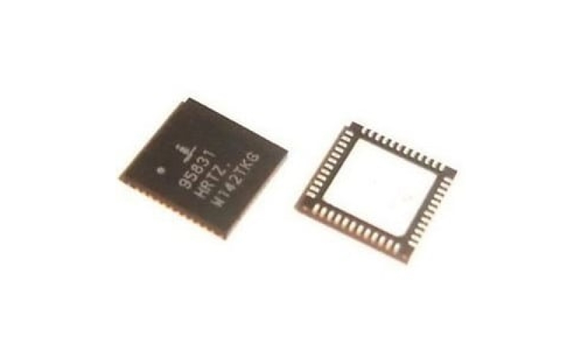 ISL95831, 95831HRZ, 95381Compliant with IMVP-7/VR12™, the ISL95831 provides a complete solution for microprocessor and graphic processor core power supply. It provides two Voltage Regulators (VRs) with three integrated gate drivers. The first VR can be configured as 3-, 2- or 1-phase VR while the second output is 1- phase VR, providing maximum flexibility. The two VRs share the serial control bus to communicate with the CPU and achieve lower cost and smaller board area compared with the two-chip approach. Based on Intersil’s Robust Ripple Regulator (R3) technology™, the PWM modulator compared to traditional modulators, has faster transient settling time, variable switching frequency during load transients and has improved light load efficiency with it’s ability to automatically change switching frequency. The ISL95831 has several other key features. Both outputs support DCR current sensing with single NTC thermistor for DCR temperature compensation or accurate resistor current sensing. Both outputs come with remote voltage sense, programmable VBOOT voltage, programmable IMAX, TMAX, adjustable switching frequency, OC protection and separate Power-Good.
