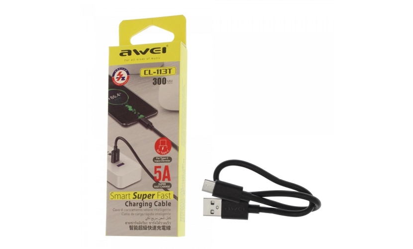 Καλώδιο φόρτισης Fast Charge και μεταφοράς δεδομένων USB 2.0 -Type-C της AWEI που προσφέρει εντυπωσιακές ταχύτητες φόρτισης στα 5Α.Μεταφέρετε εύκολα και γρήγορα βίντεο, φωτογραφίες και μουσική ενώ παράλληλα φορτίζετε τη συσκευή για να μην ξεμείνετε από μπαταρία ποτέ.
