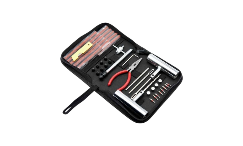 Πλήρες σετ επισκευής ελαστικών, 46 τεμαχίων, σε εργονομική εργαλειοθήκη για εύκολη αποθήκευση. Διαστάσεις θήκης: 20x14.5x4.5cm.