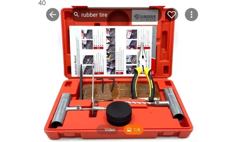 Πλήρες σετ επισκευής ελαστικών, 40 τεμαχίων, σε εργονομική εργαλειοθήκη για εύκολη αποθήκευση. Διαστάσεις θήκης: 31.5 x 21.5 x 6 cm.