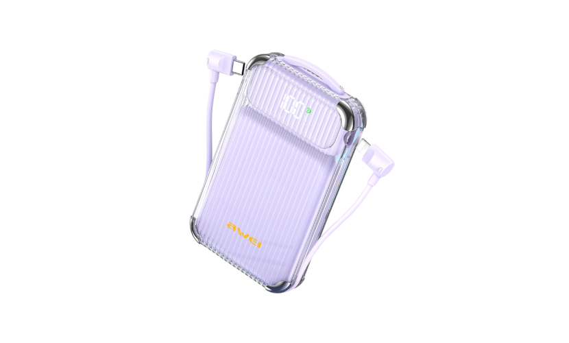 Powerbank Awei μεγάλης χωρητικότητας 10.000mah, με λειτουργία γρήγορης φόρτισης στα 22.5W και σε πρακτικό μέγεθος για εύκολη μεταφορά παντού. Διαθέτει ενσωματωμένα 2 καλώδια φόρτισης Type C & Lightning για να μην χρειάζεται να μεταφέρεται ξεχωριστά το καλώδιό σας.
