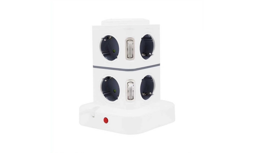 Κάθετο πολύπριζο 8 θέσεων με διακόπτες και πρίζα Σούκο - RC-G8P. Μήκος καλωδίου: 3m