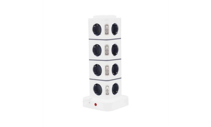 Κάθετο πολύπριζο 16 θέσεων με διακόπτες και πρίζα Σούκο - RC-G16P.Μήκος καλωδίου: 3m