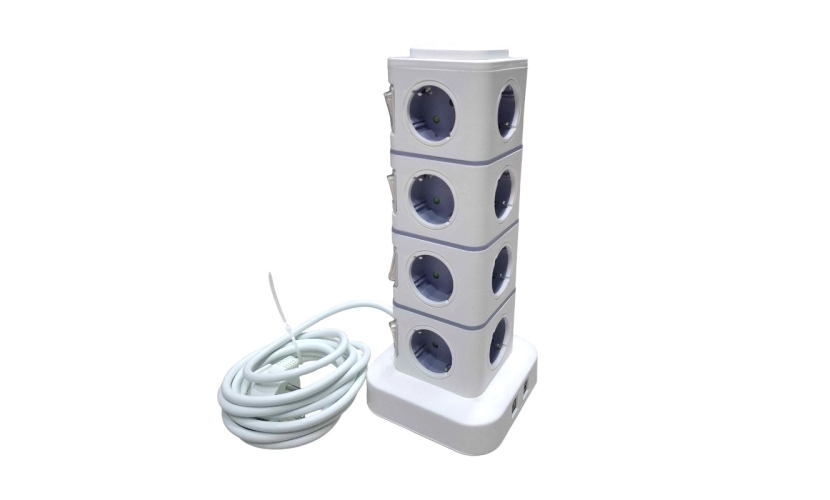 Κάθετο πολύπριζο 16 θέσεων με διακόπτες, με 4 θύρες USB και πρίζα Σούκο - RC-G16P.Μήκος καλωδίου: 3m