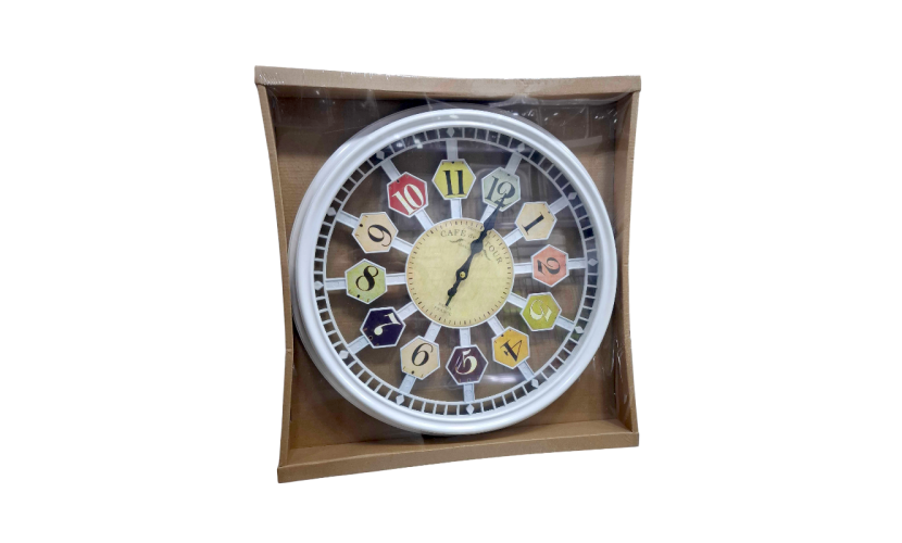 Ρολόι τοίχου αναλογικό σε μοντέρνο, ιδιαίτερο στυλ που θα ταιριάξει σε κάθε χώρο και διακόσμηση. Υλικό: πλαστικό. Διάμετρος: 43cm
