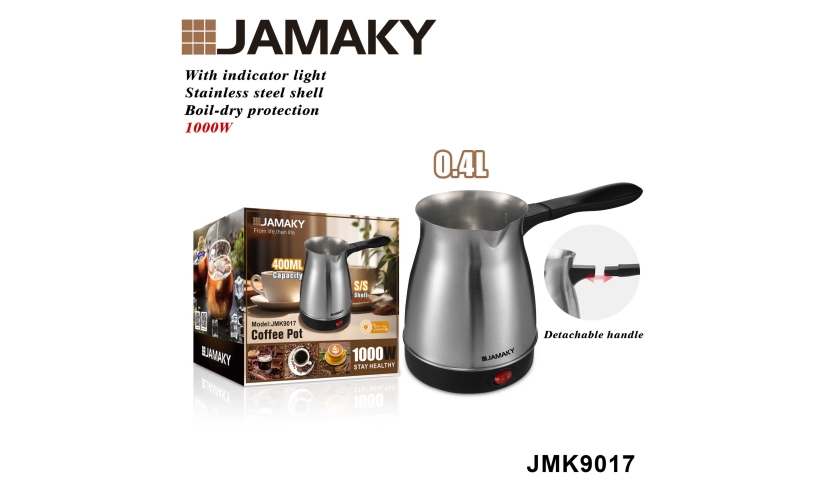 Ηλεκτρικό μπρίκι inox της Jamaky, για ελληνικό καφέ και ζεστό νερό, εύχρηστο και πρακτικό, για να έχετε άμεσα έτοιμο τον αγαπημένο σας ελληνικό καφέ ή να βράσετε νερό σε λίγα λεπτά.