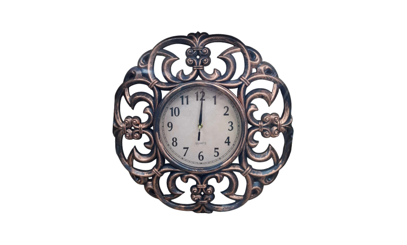 Ρολόι τοίχου πλαστικό, σε εντυπωσιακό Vintage σχεδιασμό με μεταλλικό εφέ και ανάγλυφα σχέδια. Διάμετρος: 50cm
