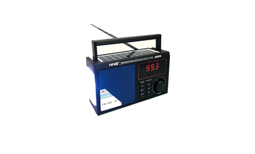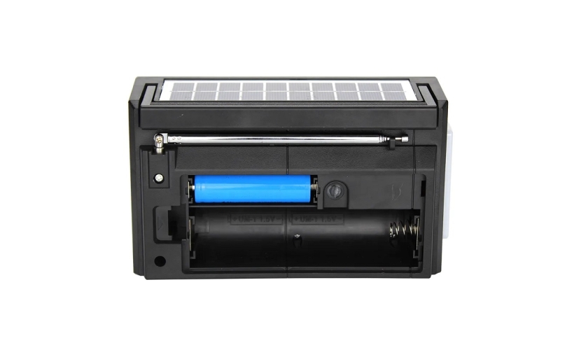 Χαρακτηριστικά: Bluetooth, Αναλογικό tuning, Συχνότητες ραδιοφώνου: FM: 87.5 – 108 (64-108) MHz, Ισχύς: 2W, Φόρτιση: ενσωματωμένη μπαταρία 18650 Lithium battery 1200mah, Θύρες: TF Card, USB, Micro USB, Ηλιακό πάνελ φόρτισης, Πλαϊνός φακός LED, Πτυσσόμενη κεραία, Χειρολαβή μεταφοράς. Διαστάσεις: 18.5 x 10.5 x 8cm.