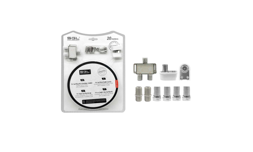Σετ σύνδεσης κεραίας τηλεόρασης με καλώδιο μήκους 20m και διακλαδωτή 2 εξόδων. Χρώμα: Λευκό.