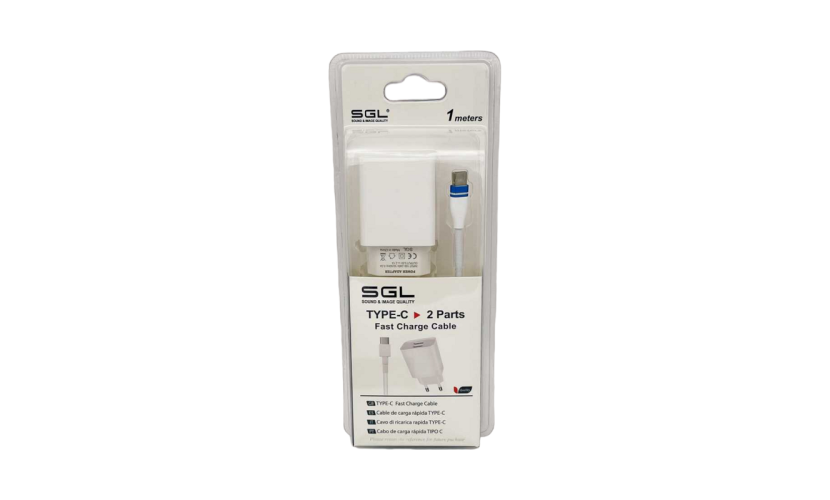 Αντάπτορας φόρτισης με καλώδιο και 2 θύρες USB - TypeC - Quick Charge - B1-F2 - 1m - 099545