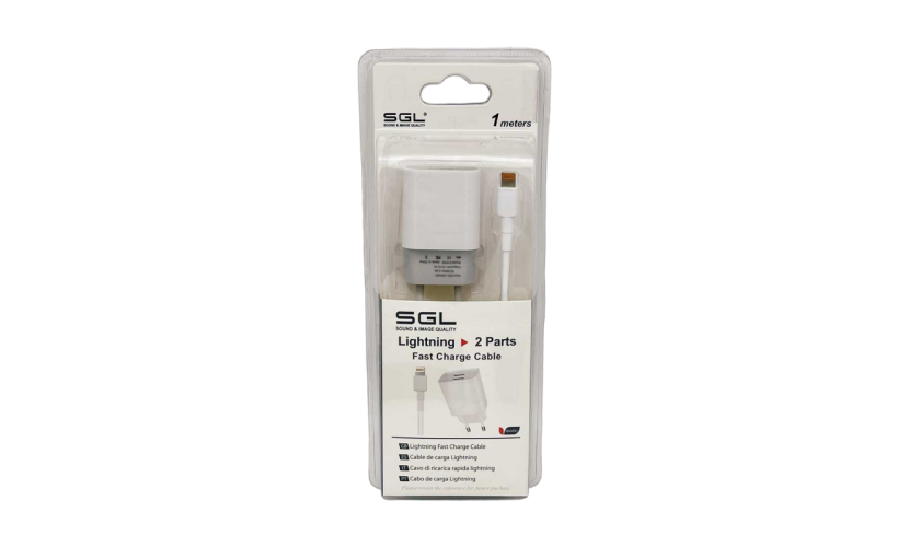 Αντάπτορας φόρτισης Quick Charge με καλώδιο Lightning και 2 θύρες USB: 1A & 2.1A. Μήκος: 1m. Χρώμα: Λευκό.