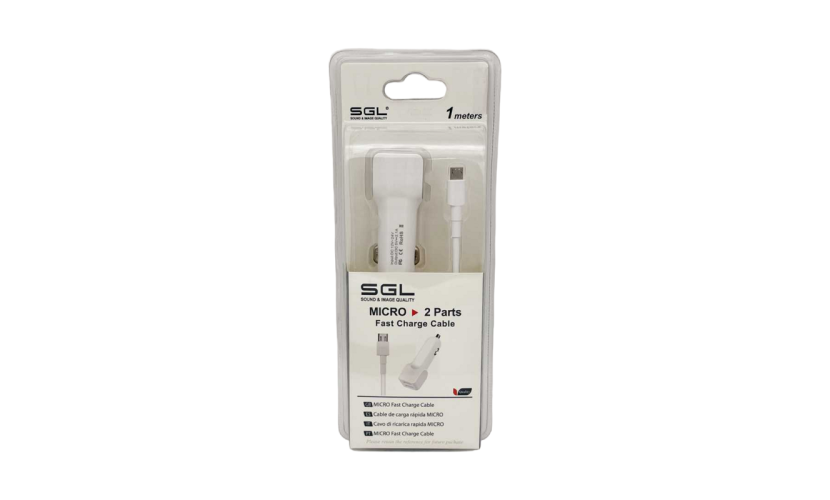 Φορτιστής αναπτήρα αυτοκινήτου με καλώδιο Fast Charge Micro USB και 2 θύρες USB: 1A & 2.1A. Μήκος: 1m. Χρώμα: Λευκό.