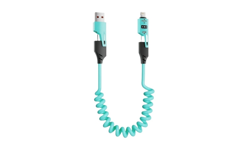 Καλώδιο φόρτισης Fast Charge και μεταφοράς δεδομένων USB Type-C σε Type-C με 2 αντάπτορες σε Lightning και USB 2.0.Με εργονομικό σχεδιασμό, σπιράλ επεκτεινόμενο.Προσφέρει εξαιρετικά υψηλές ταχύτητες φόρτισης σε έως και 65W.