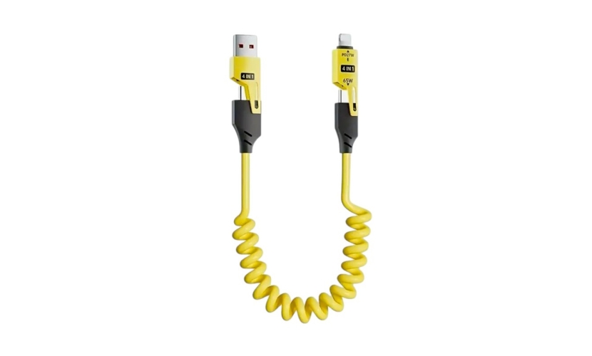 Καλώδιο φόρτισης Fast Charge και μεταφοράς δεδομένων USB Type-C σε Type-C με 2 αντάπτορες σε Lightning και USB 2.0.Με εργονομικό σχεδιασμό, σπιράλ επεκτεινόμενο.Προσφέρει εξαιρετικά υψηλές ταχύτητες φόρτισης σε έως και 65W.