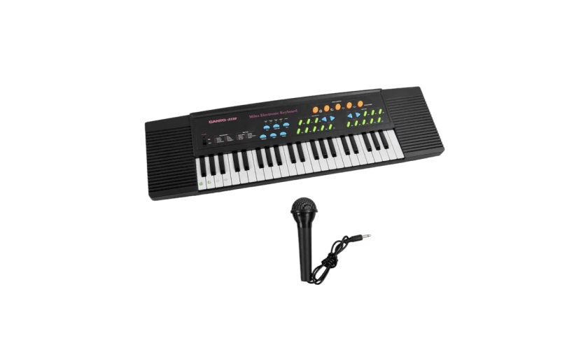 Παιδικό αρμόνιο με μικρόφωνο, με ρεαλιστικό σχεδιασμό και πολλαπλές λειτουργίες, ιδανικό για τους μικρούς λάτρεις της μουσικής.