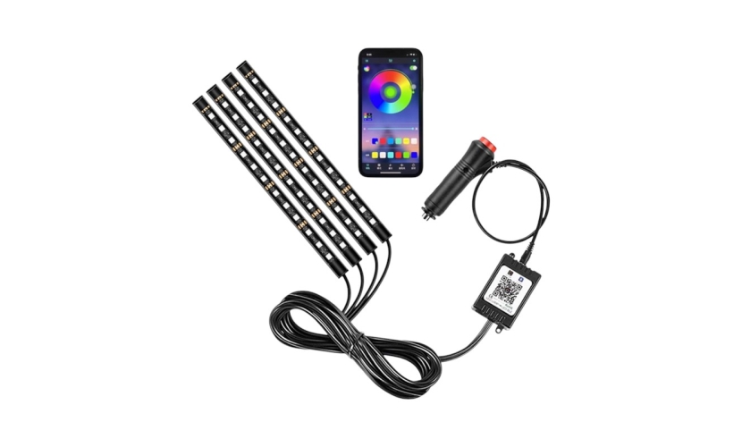 Car Atmosphere Light Strips τηλεχειριζόμενα μέσω App από το smarphone σας. Χρώμα φωτισμού: RGBW4 ταινίες x 12 λυχνίες LEDΤάση: 12VΡεύμα: 1.2AΕύκολη εγκατάσταση με αυτοκόλλητη ταινίαΜήκος καλωδίου 1.2mΜήκος ταινίας led: 4 x 22cmΤροφοδοσία από τον αναπτήρα αυτοκινήτου (περιλαμβάνεται πρίζα αναπτήρα).