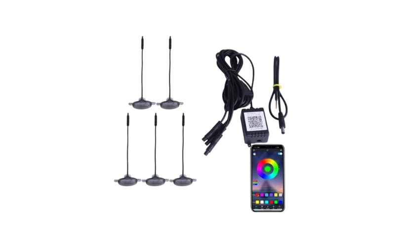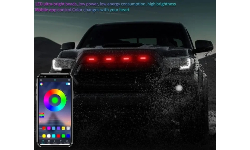Φώτα ημέρας αυτοκινήτου LED, σετ 5 τεμαχίων, τηλεχειριζόμενα μέσα App από το smartphone σας, με τοποθέτηση στη μάσκα του αυτοκινήτου, ιδανικά για ασφαλή οδήγηση την ημέρα και σε συνθήκες βροχής και ομίχλης αλλά και για διακοσμητικό φωτισμό.