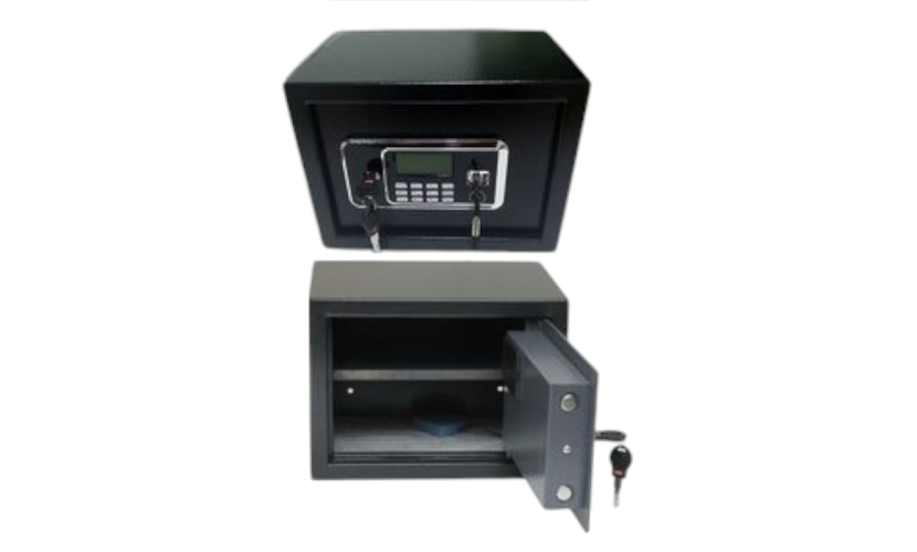 Kατασκευασμένο από ατσάλι, με σύστημα συναγερμού.Ηλεκτρονική κλειδαριά για μέγιστη ασφάλεια.Προγραμματιζόμενος κωδικός ανοίγματος από 3 έως 6 ψηφία.Ψηφιακή οθόνη.Αυτόματα ανοιγόμενη πόρτα με την καταχώρηση του σωστού κωδικούΣύστημα κλειδώματος μετά από 3 λάθος καταχωρήσεις2 κλειδιά ασφαλείας σε περίπτωση εξάντλησης μπαταρίας.Μπάρες κλειδώματος από συμπαγές ατσάλι 18mmΈνδειξη χαμηλής μπαταρίας.Περιλαμβάνονται 2 κλειδιά και 4 μπαταρίες ΑΑ.Εσωτερική βάση με μοκέτα.Πάχος πόρτας 4 mm.Βάρος 8 Kg.Διαστάσεις εξωτερικές: 25*35*25 cm.