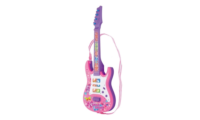 Παιδική ηλεκτρονική κιθάρα σε πανέμορφο πολύχρωμο σχεδιασμό, με φωτισμό και δυνατό ήχο, για να γίνεις μία αληθινή Ροκ Σταρ! Διαθέτει ρυθμιζόμενο λουράκι ώμου.
