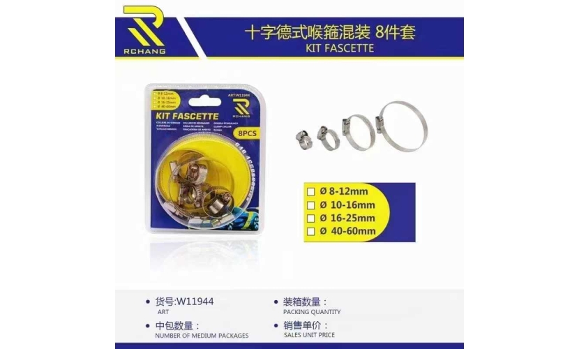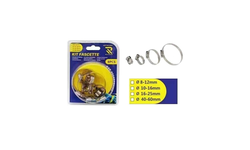 Σφιγκτήρες σωλήνα, σετ 8 τεμαχίων. Μεγέθη:2 x 8-12mm2 x 10-16mm2 x 16-25mm2 x 40-60mm
