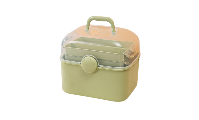 Πλαστικό κουτί οργάνωσης καλλυντικών και μπιζού, μεγάλης χωρητικότητας, με πολλαπλές θήκες οργάνωσης, χειρολαβή και εργονομική σχεδίαση 3 επιπέδων για εξοικονόμηση χώρου.