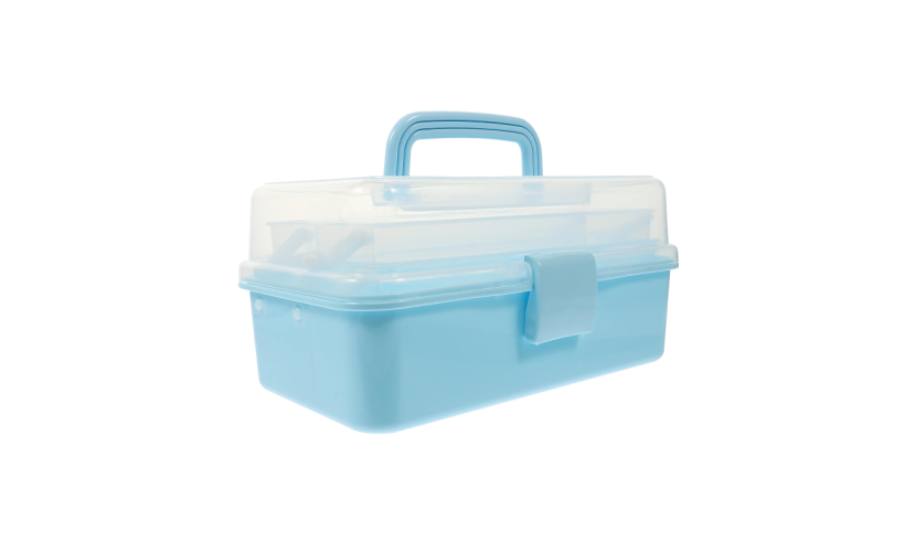 Πλαστικό κουτί οργάνωσης καλλυντικών και μπιζού, με πολλαπλές θήκες οργάνωσης, χειρολαβή και εργονομική σχεδίαση 3 επιπέδων για εξοικονόμηση χώρου.