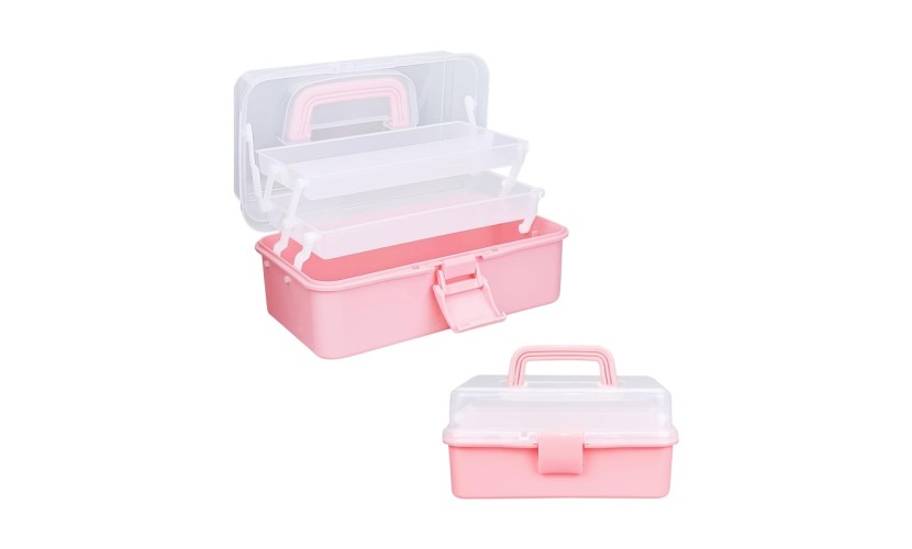 Πλαστικό κουτί οργάνωσης καλλυντικών και μπιζού, με πολλαπλές θήκες οργάνωσης, χειρολαβή και εργονομική σχεδίαση 3 επιπέδων για εξοικονόμηση χώρου.