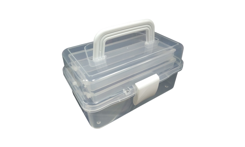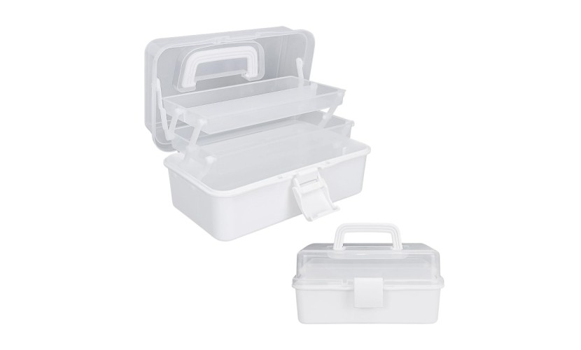 Πλαστικό κουτί οργάνωσης καλλυντικών και μπιζού, με πολλαπλές θήκες οργάνωσης, χειρολαβή και εργονομική σχεδίαση 3 επιπέδων για εξοικονόμηση χώρου.