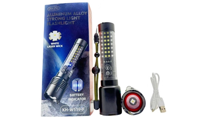 Φωτεινότητα: 1000 Lumens,Πλαϊνός φακός LED,SOS FlashΜπαταρία 18650 επαναφορτιζόμενη (περιλαμβάνεται),Αυτονομία μπαταρίας: έως 4 ώρες,Λυχνία ένδειξης μπαταρίας,Περίβλημα αλουμινίου υψηλής ανθεκτικότητας,Λουράκι χειρός,Διαστάσεις: 18 x 4cm.
