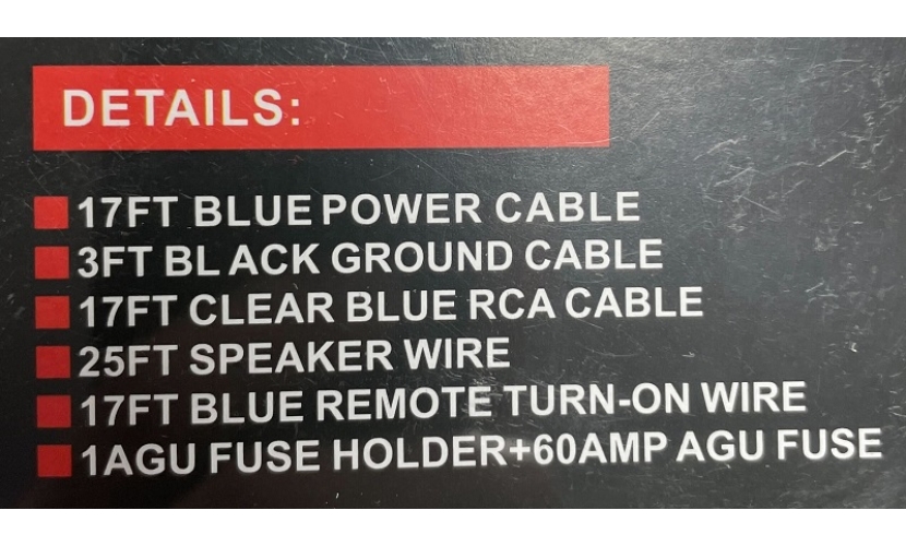 Πλήρες σετ καλωδίωσης για τον ενισχυτή του αυτοκινήτου σας, για εύκολη εγκατάσταση, συμβατό με όλα τα αυτοκίνητα. Υψηλής ποιότητας και απόδοσης. Χαμηλός θόρυβος και παραμόρφωση. Περιλαμβάνεται στο πακέτο: καλώδιο τροφοδοσίας σύρμα γείωσης καλώδιο ελέγχου καλώδιο διασύνδεσης RCA υποδοχή ασφαλειών