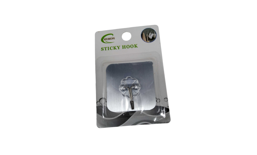 Αυτοκόλλητη κρεμάστρα μονής θέσης, με μεταλλικό εφέ, ιδανική για το μπάνιο και την κουζίνα σας. Εύκολη και σταθερή τοποθέτηση σε πλακάκι τοίχου χάρη στο ισχυρό αυτοκόλλητο που διαθέτει στην πίσω όψη, χωρίς να προκαλεί αλλοιώσεις. Υλικό: πλαστικό & γαντζάκι inoxΔιαστάσεις: 6 x 6cm