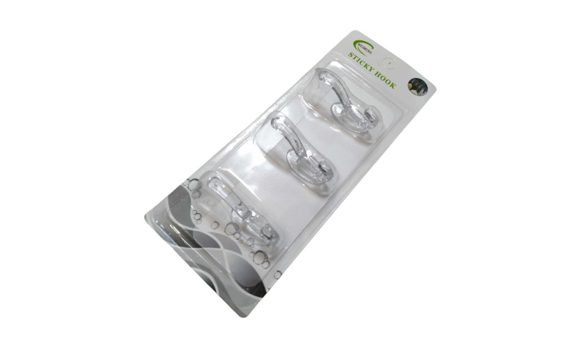 Αυτοκόλλητη κρεμάστρα 3 θέσεων, ιδανική για το μπάνιο και την κουζίνα σας. Εύκολη και σταθερή τοποθέτηση σε πλακάκι τοίχου χάρη στο ισχυρό αυτοκόλλητο που διαθέτει στην πίσω όψη, χωρίς να προκαλεί αλλοιώσεις. Υλικό: πλαστικό.Διαφανής βάση τοίχουΔιαστάσεις: 18.5 x 6cm