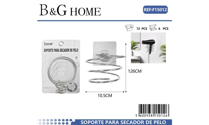 Επιτοίχια βάση για πιστολάκι μαλλιών, μεταλλική, υψηλής ποιότητας, με πρακτικό σχεδιασμό και εύκολη τοποθέτηση με ισχυρό αυτοκόλλητο, χωρίς την απαίτηση βιδών.