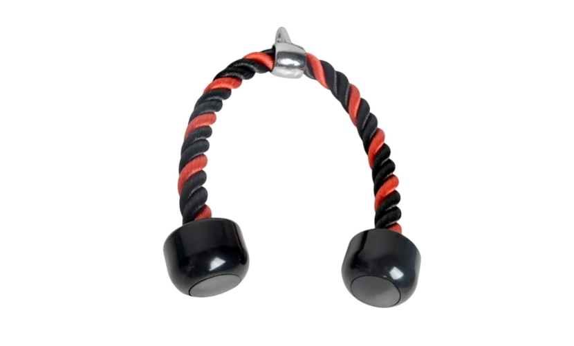 Σχοινί τροχαλίας για εκγύμναση τρικεφάλων αλλά και πολλαπλές ασκήσεις για την εκγύμναση ώμων και πλάτης. Κατασκευασμένο από πυκνές υφαντές ίνες νάιλον, μέγιστης ανθεκτικότητας.Οι λαβές είναι κατασκευασμένες από καουτσούκ για σταθερό αντιολισθητικό κράτημα και η κεφαλή κρεμάσματος είναι ατσάλινη.