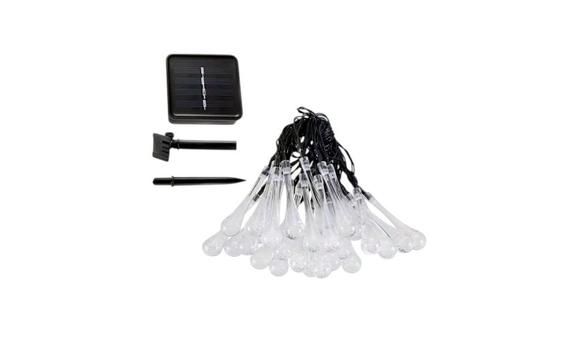 Ηλιακή γιρλάντα φωτισμού LED με λαμπτήρες σε εντυπωσιακό σχέδιο σταγόνα, με ενισχυμένο καλώδιο και ρυθμιζόμενο ηλιακό πάνελ, ιδανική για έναν όμορφο ατμοσφαιρικό φωτισμό στο μπαλκόνι, τον κήπο ή τη βεράντα σας, εύκολα, ασύρματα και οικονομικά χωρίς την ανάγκη πρόσβασης σε ρεύμα.